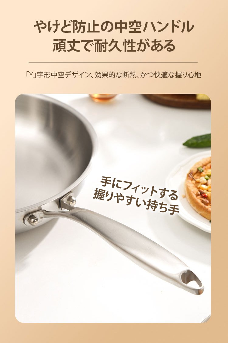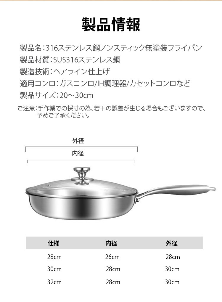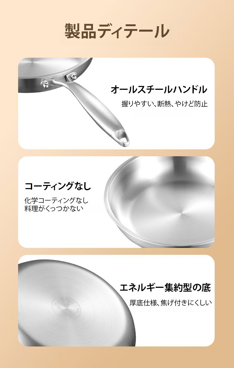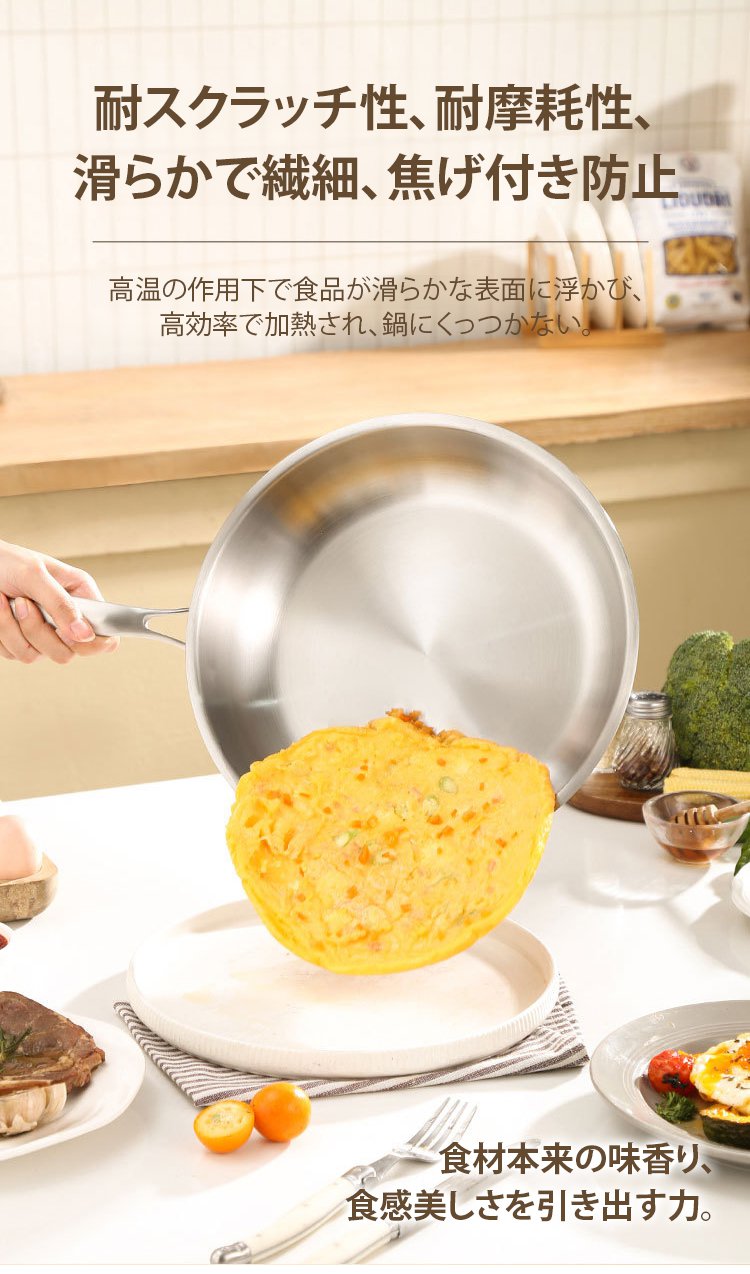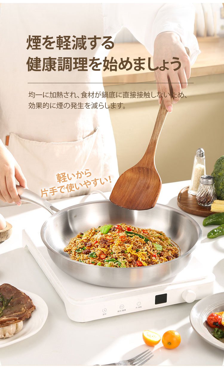 316ステンレス鋼ノンスティック無塗装フライパン