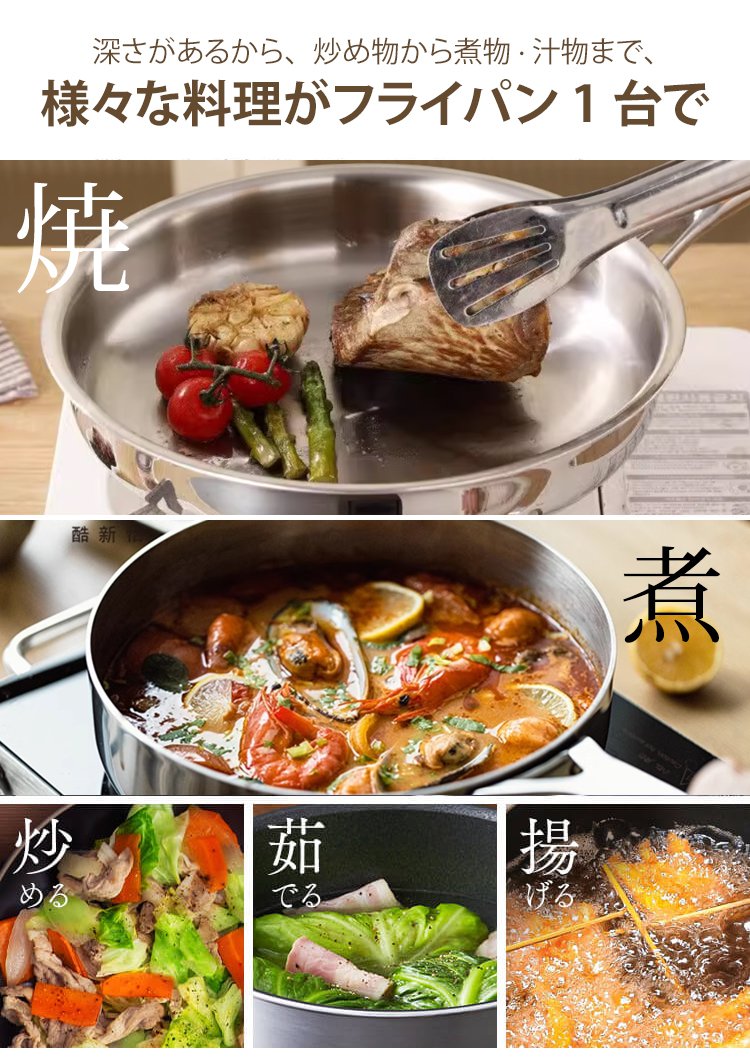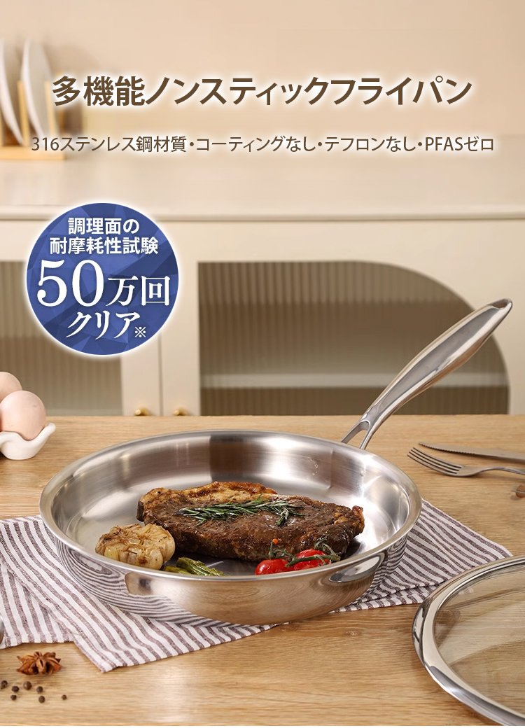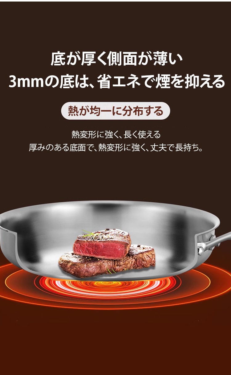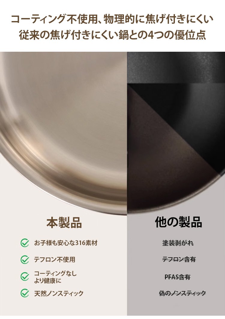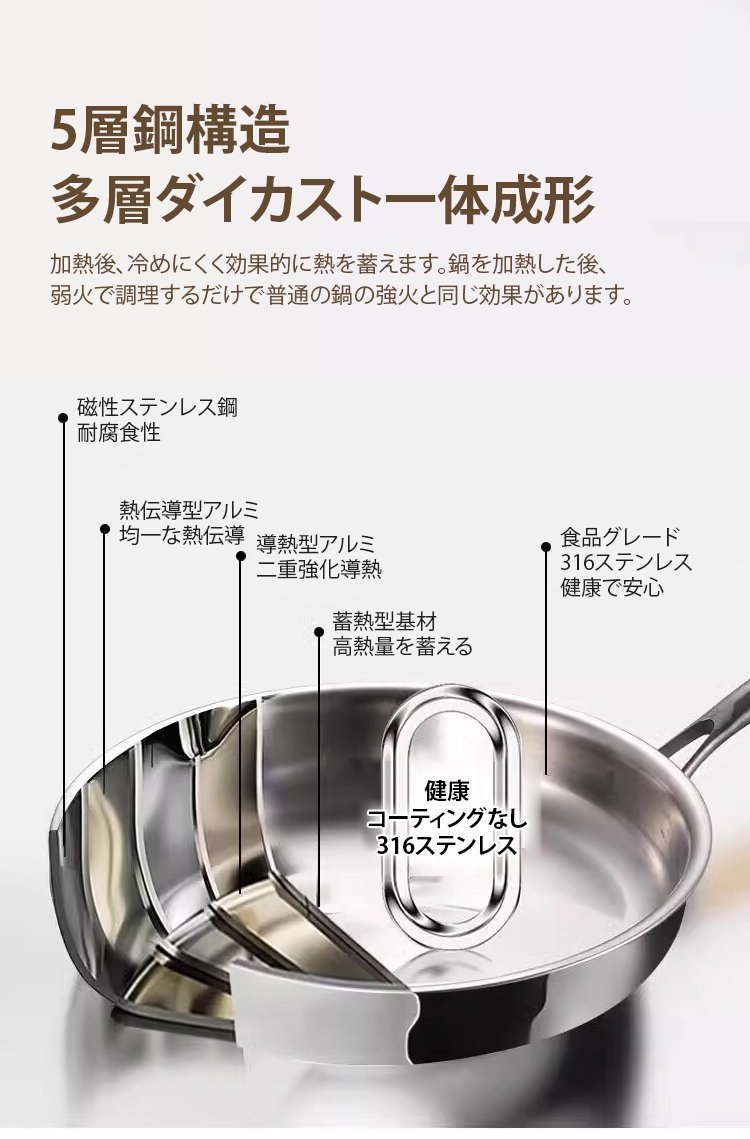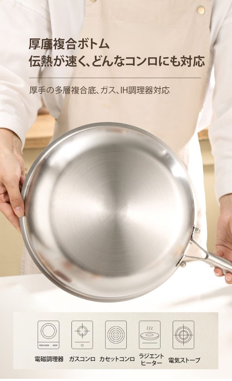 316ステンレス鋼ノンスティック無塗装フライパン